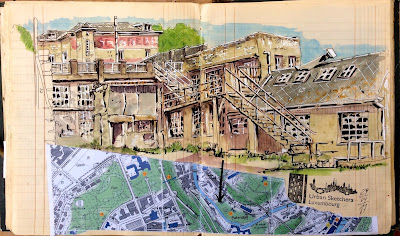 Saturday afternoon we went downhill and fell in love with this old abandoned factory... a real thrill to sketch...