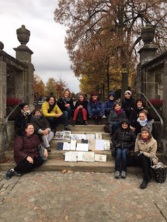 Nous nous sommes donnés le temps de dessiner jusqu'à 15h30. A 15h25, comme un signal, le rayon de soleil disparaît, les nuages s'amoncellent et le froid engourdit les doigts. Le temps de nous retrouver à la sortie du cimetière, un vent frais s'était levé et quelques gouttes de pluie commençaient à tomber.
